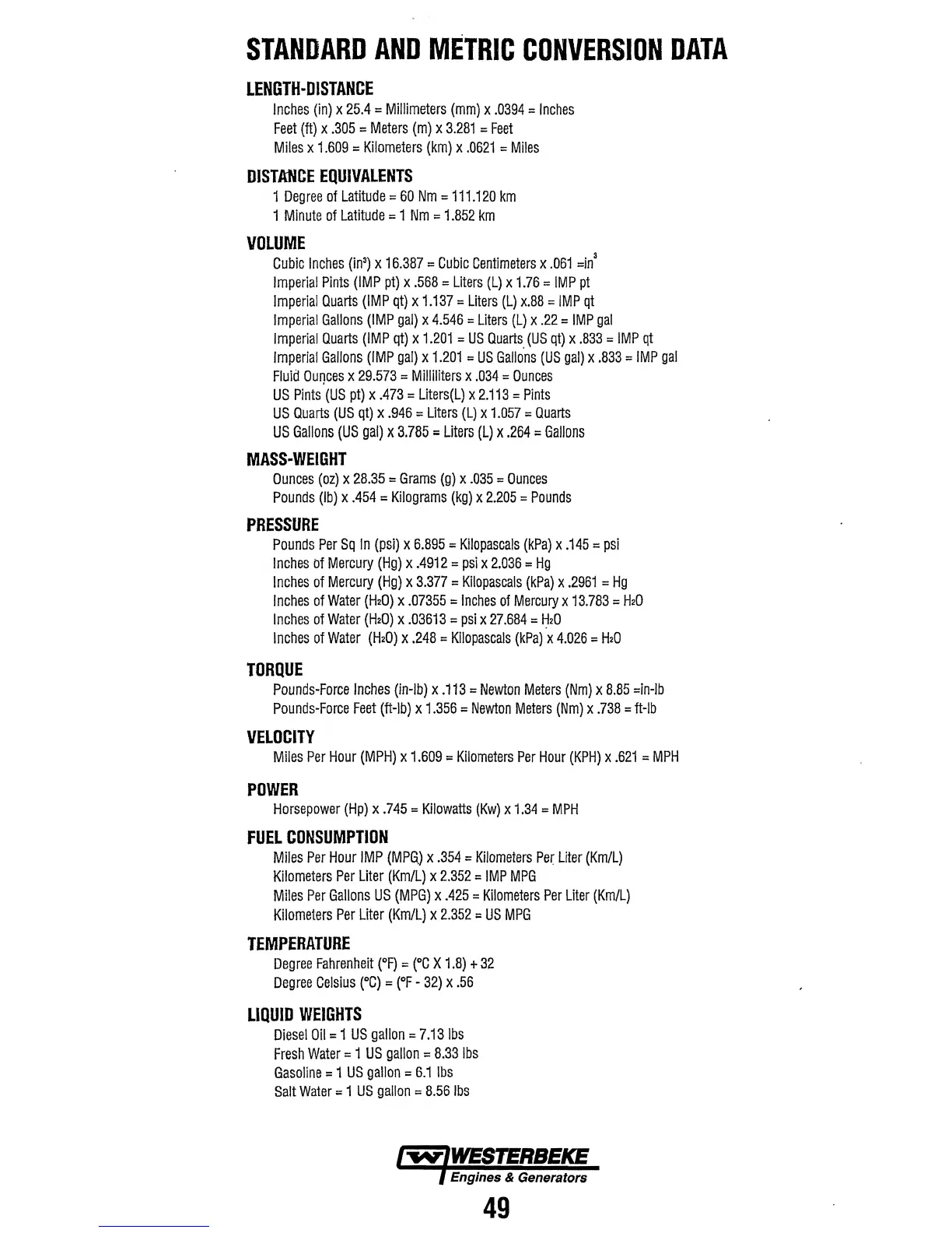 Westerbeke 5.0KW BCD - Metric Conversion Data (Chart)