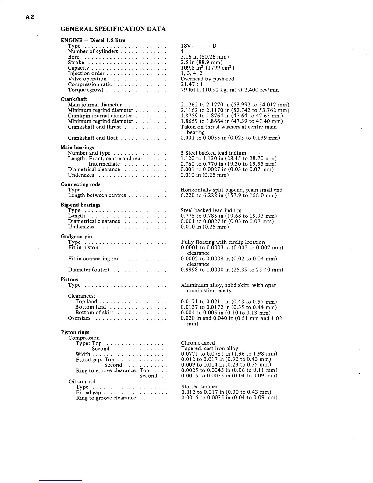 ENGINE - Diesel 1.8 litre