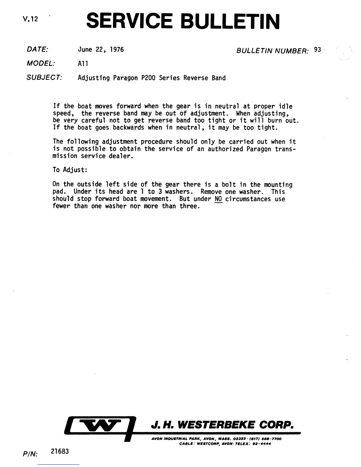 Westerbeke 50 - Adjusting Paragon P200 Series Reverse Band