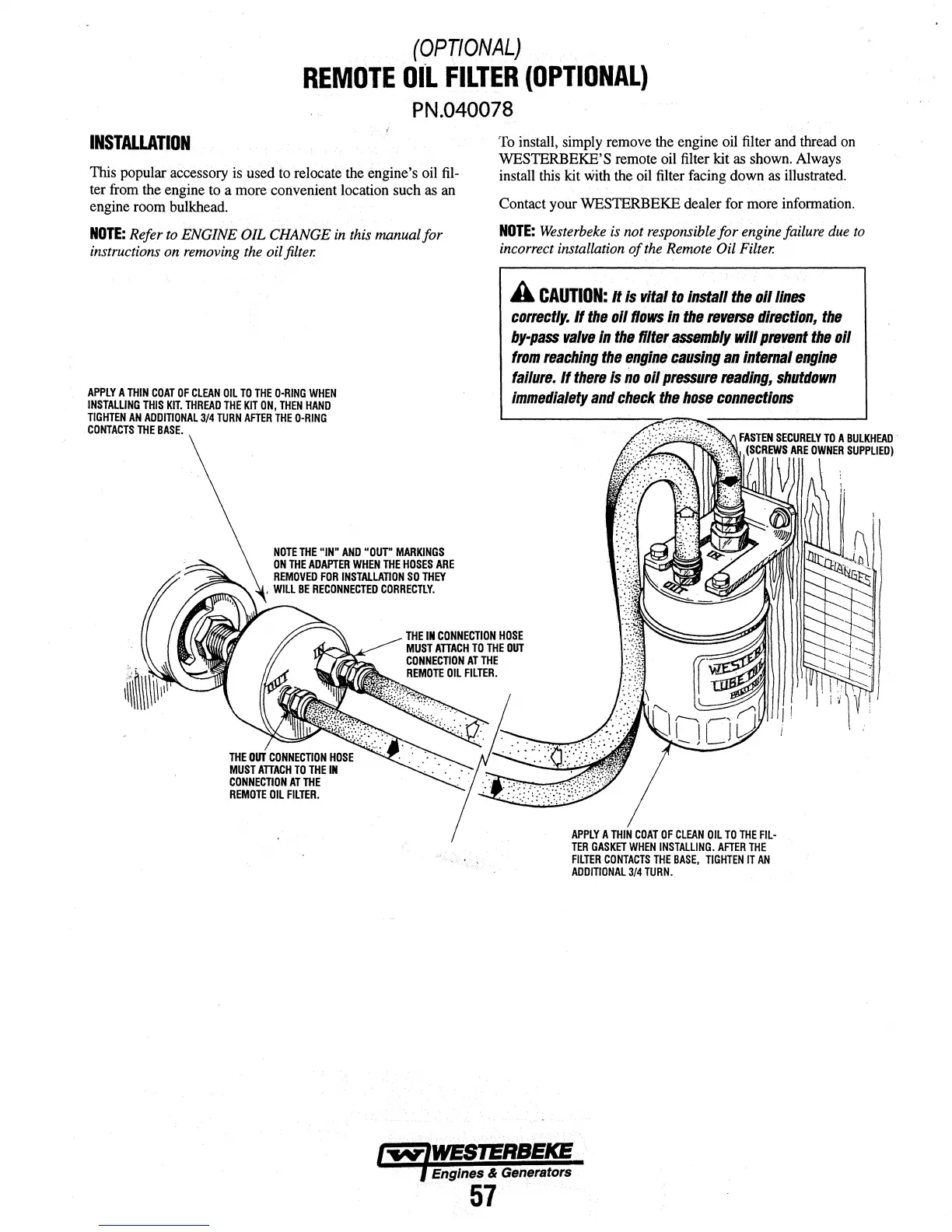 WESTERBEKE'S remote oil filter kit as shown. Always