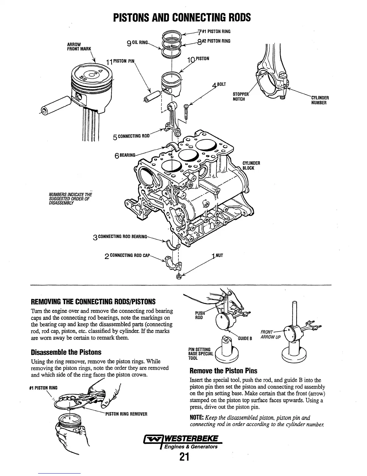 Westerbeke 6.5 MCG - PISTONS AND CONNECTING RODS; REMOVING THE CONNECTING RODS;PISTONS