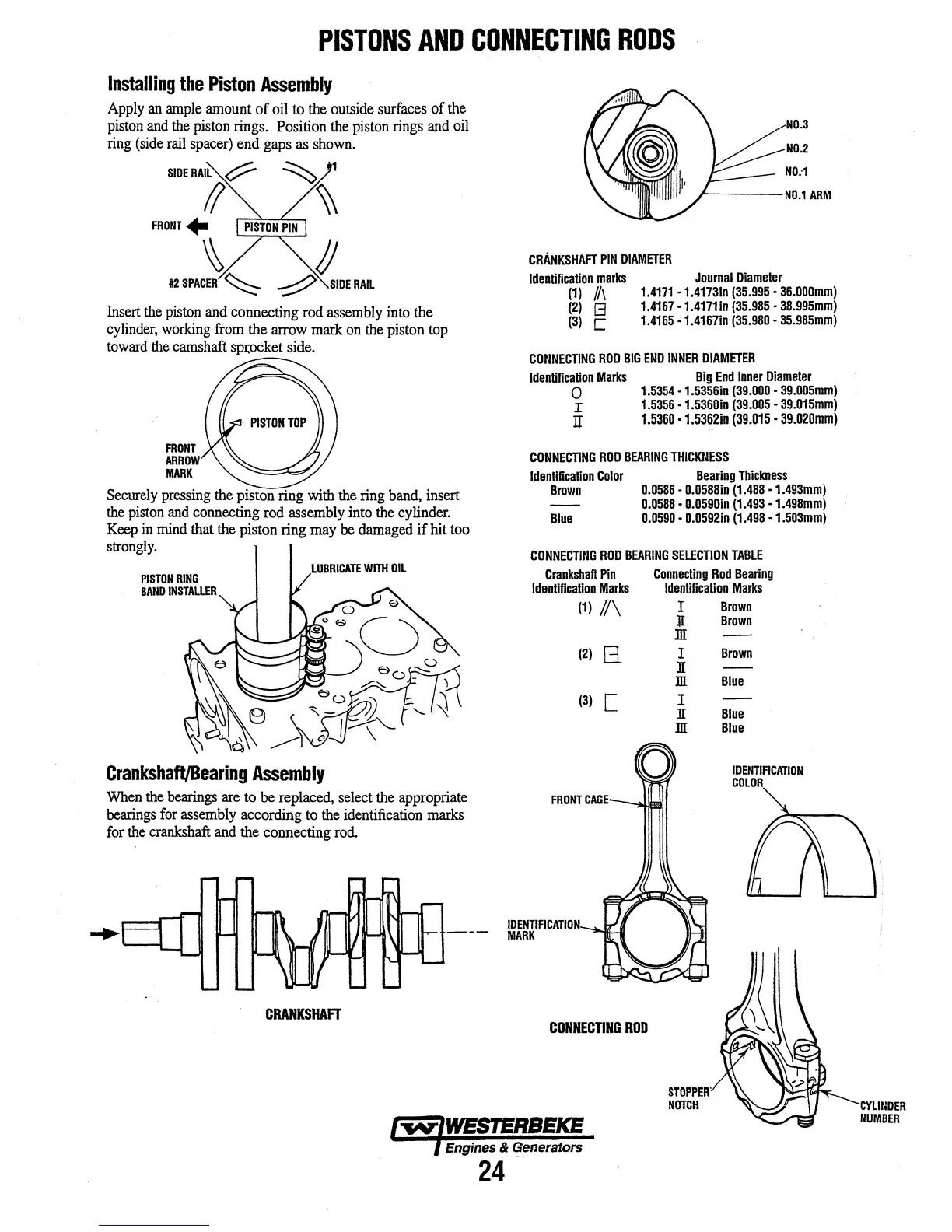 Westerbeke 6.5 MCG - PISTONS AND CONNECTING RODS; Installing the Piston Assembly; Crankshaft;Bearing Assembly