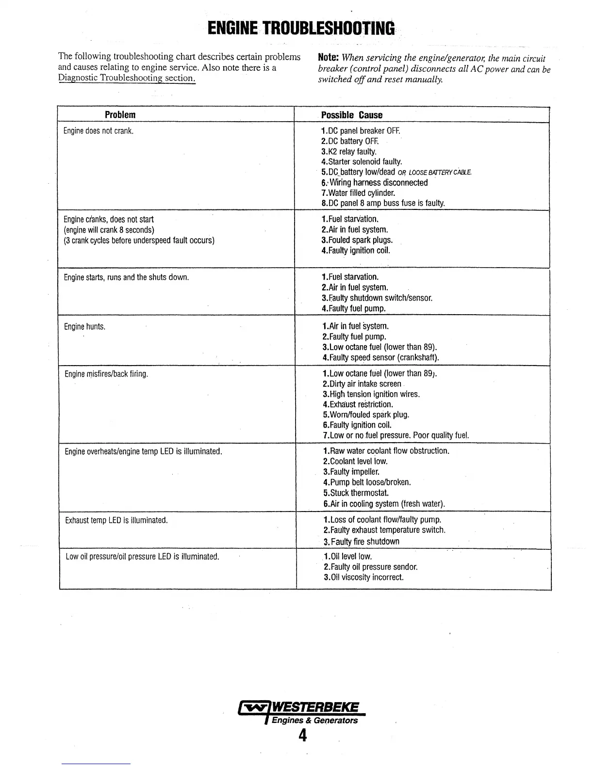Westerbeke 6.5 MCG - ENGINE TROUBLESHOOTING
