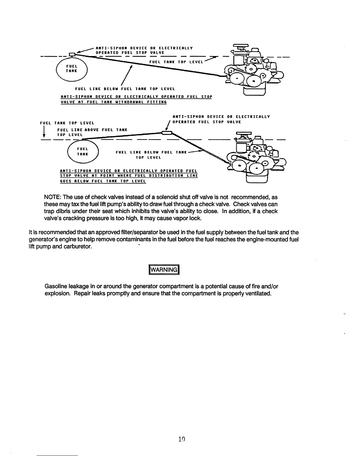 of check valves instead of a solenoid shut off valve is not recommended,