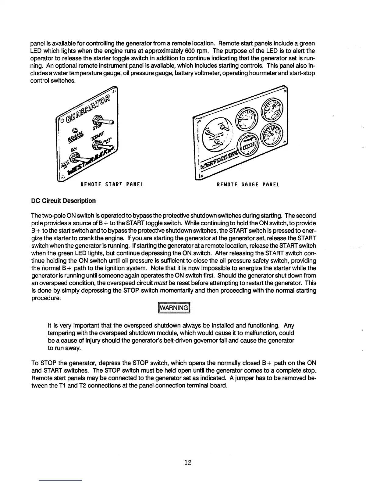 ning. An optional remote instrument panel is available, which includes starting controls. This panel also in-