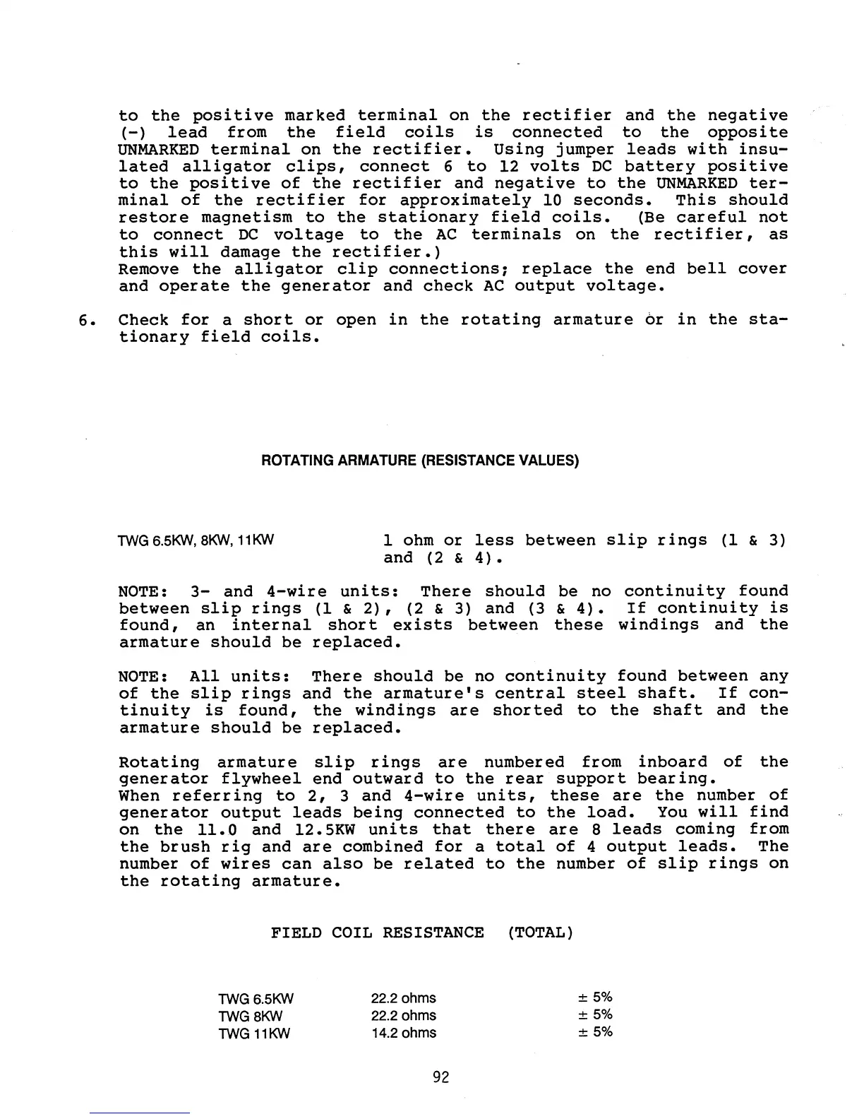 ROTATING ARMATURE (RESISTANCE VALUES)