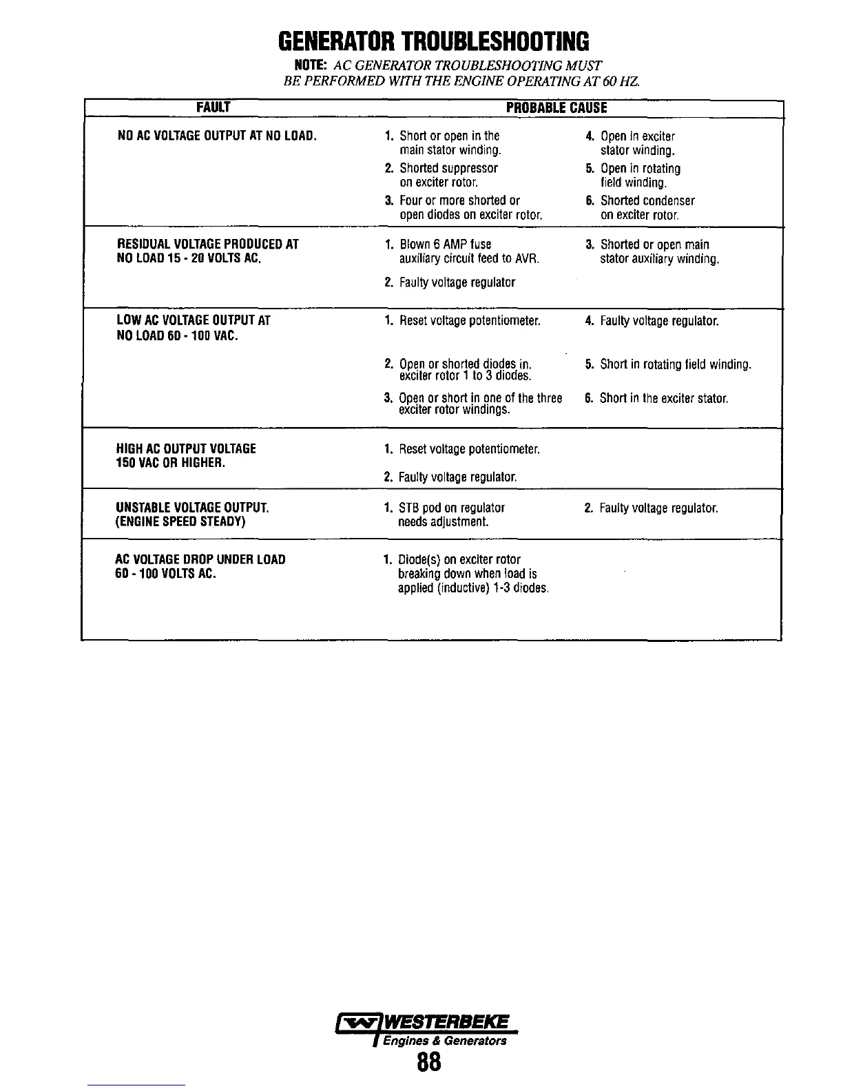 Westerbeke 65A-FOUR - Generator Troubleshooting (Chart)
