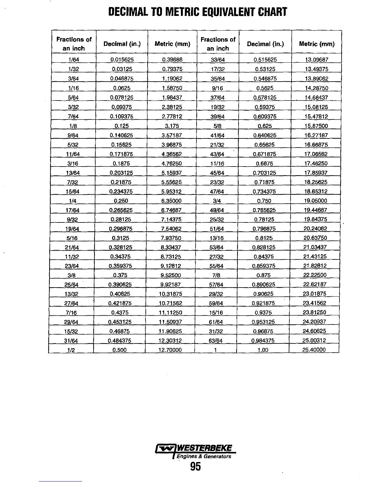 Decimal (in.) Metric (mm)