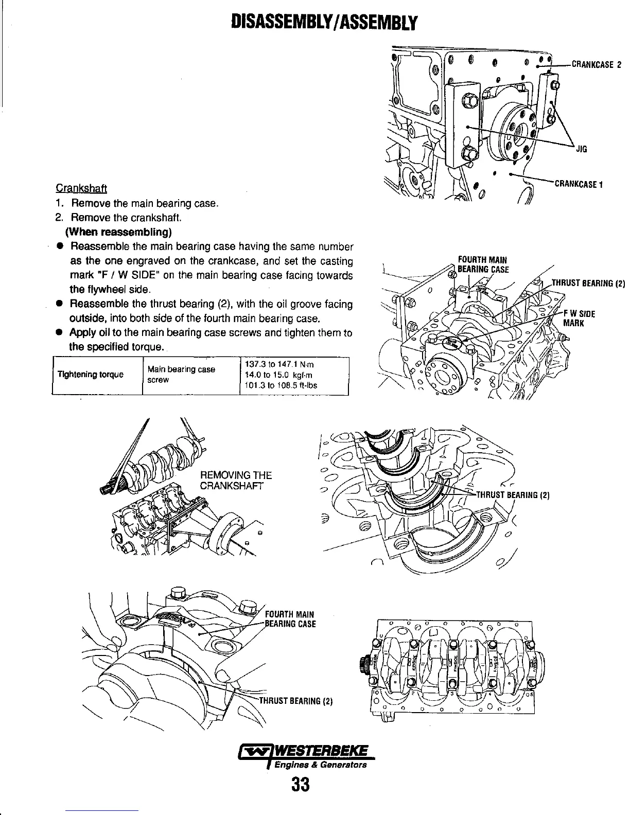 • Reassemble the thrust bearing (2), with the oil groove facing