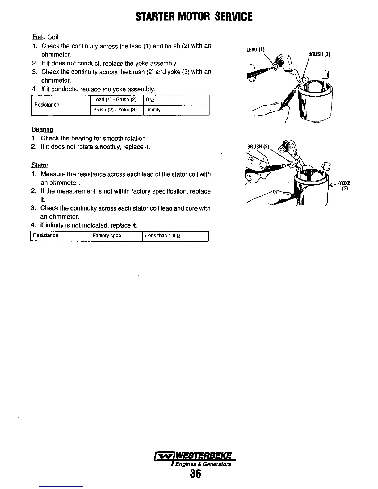 3. Check the continuity across the brush (2) and yoke (3) with an