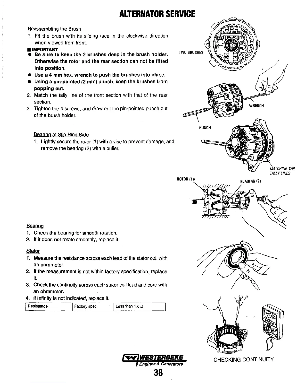 Check the continuity aoross each stator coil lead and core with