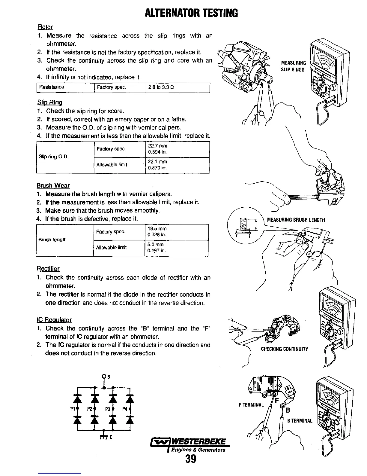 Check the continuity across the slip ring and core with