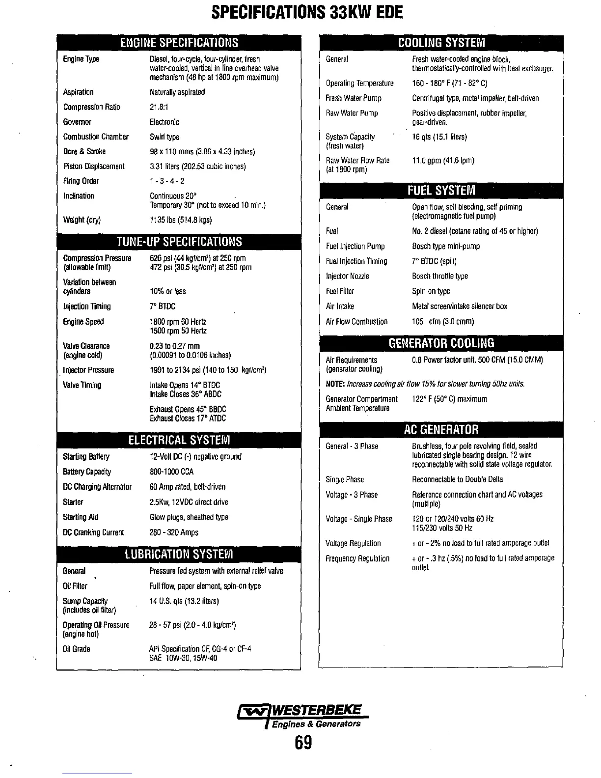 Westerbeke 65A-FOUR - Specifications· 33 Kw EOE