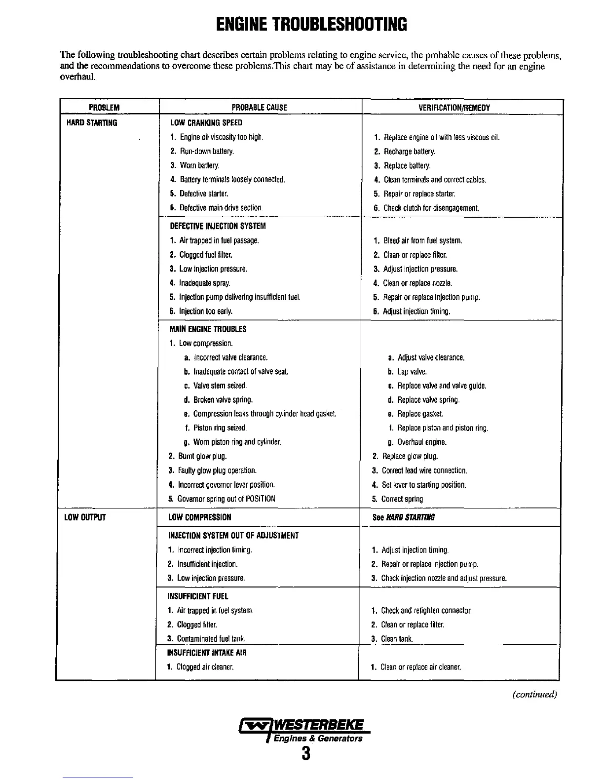 Westerbeke 65A-FOUR - Engine Troubleshooting