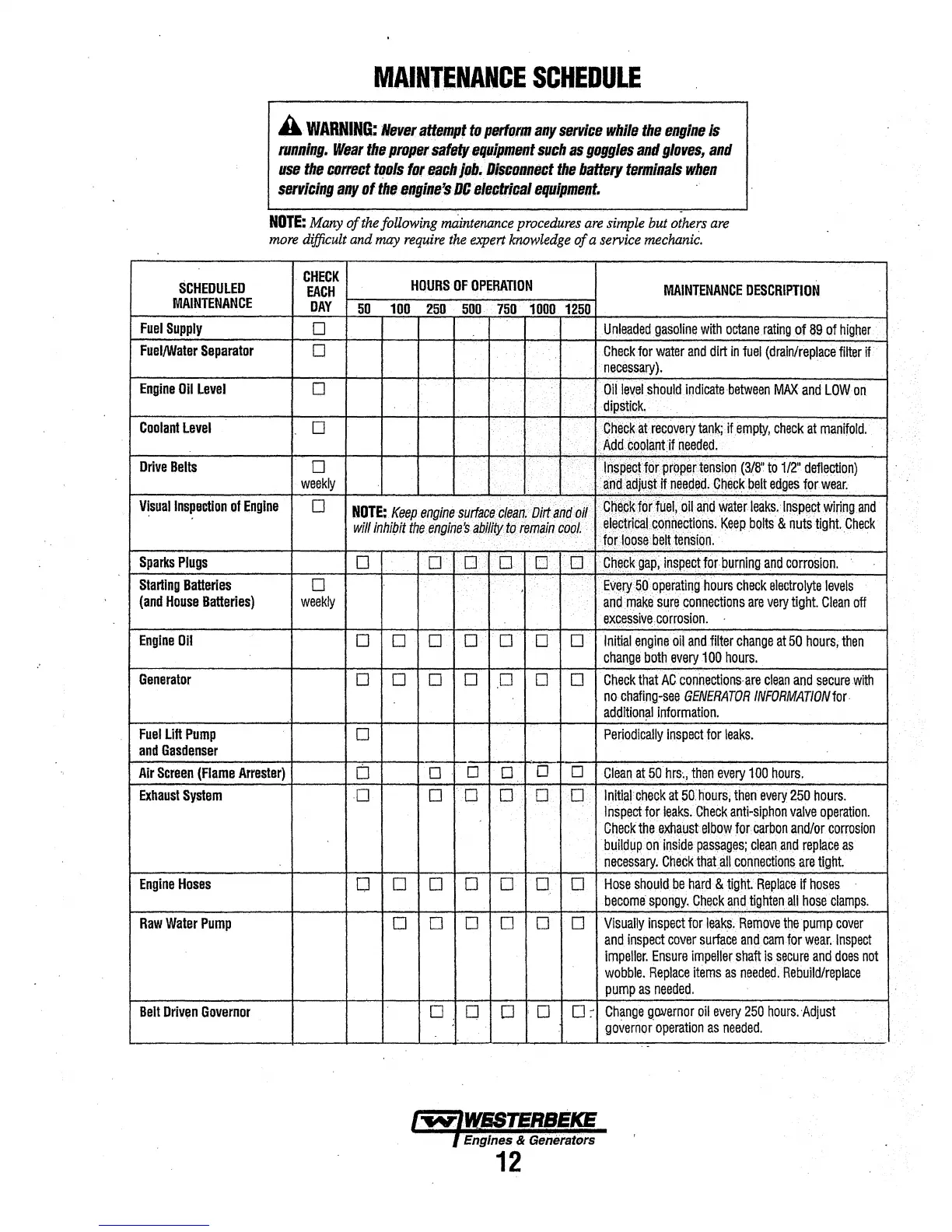 Westerbeke 7.0 BCG - Maintenance Schedule