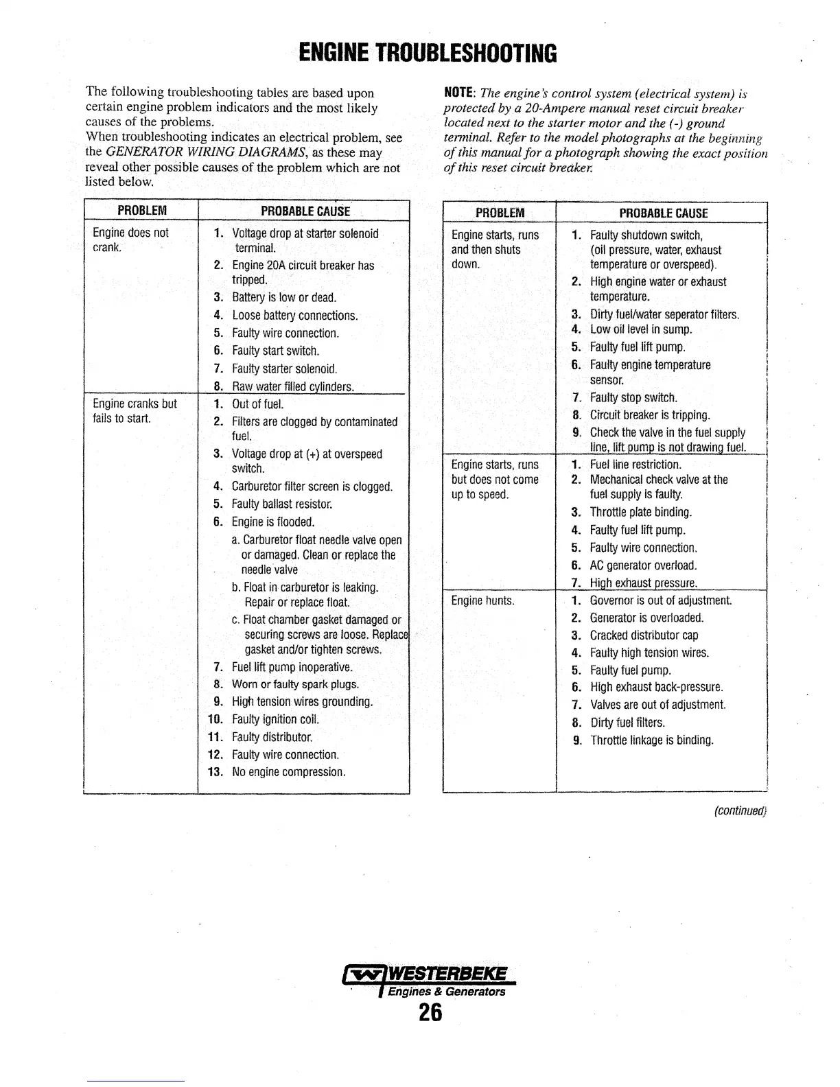 Westerbeke 7.0 BCG - Engine Troubleshooting