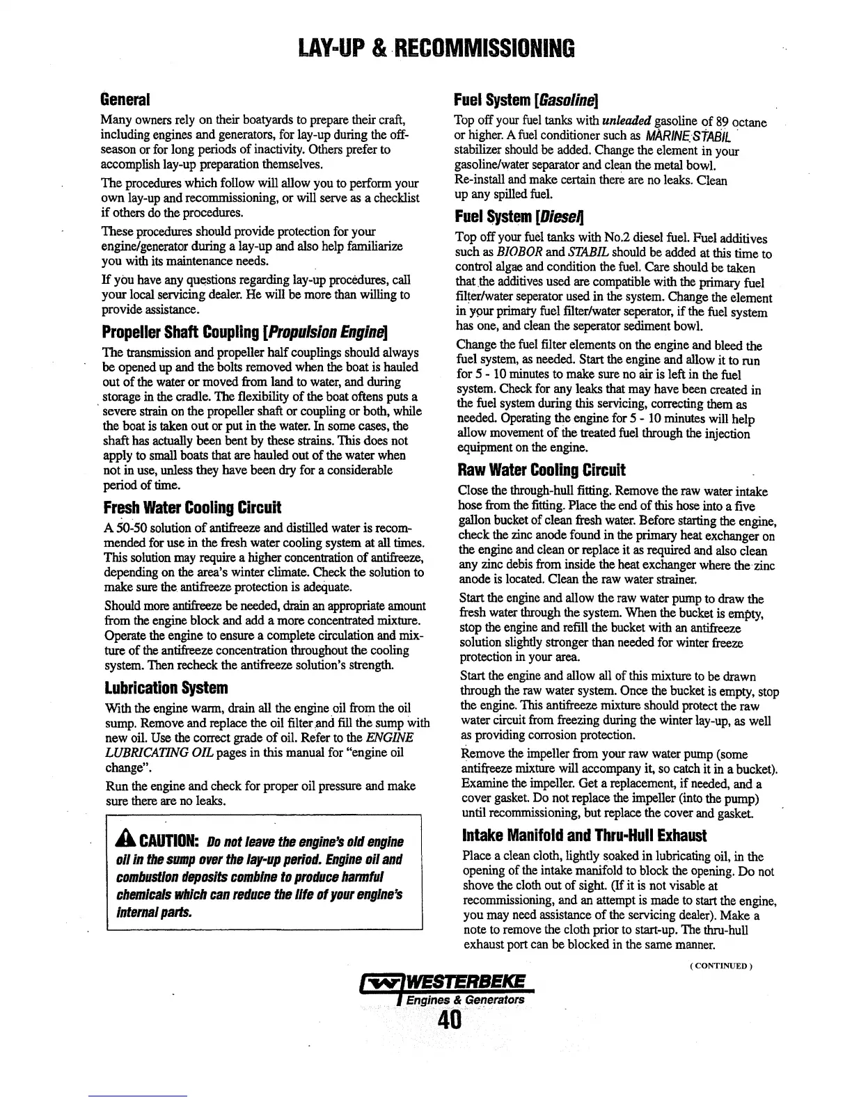 engine/generator during a lay-up and
