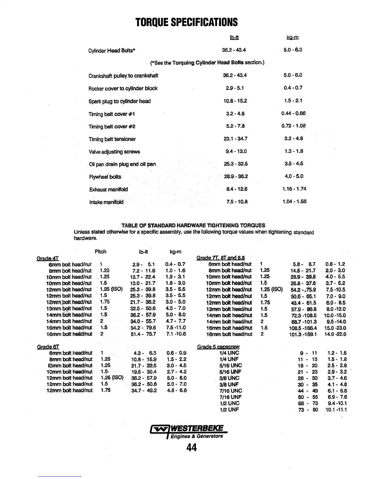 Westerbeke 7.0 BCG - Torque Specifications