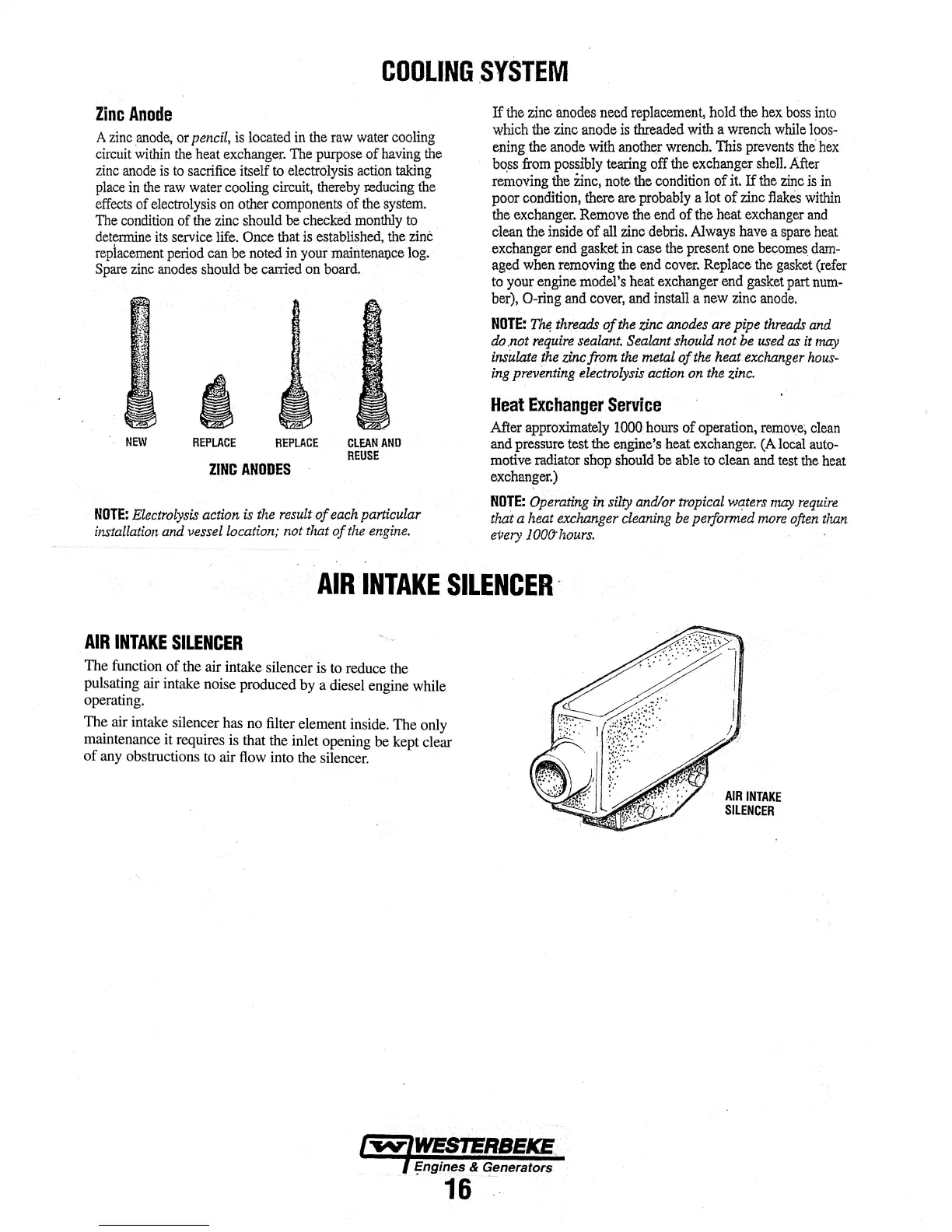 Westerbeke 8.0 BTD - Zinc Anode; Air Intake Silencer