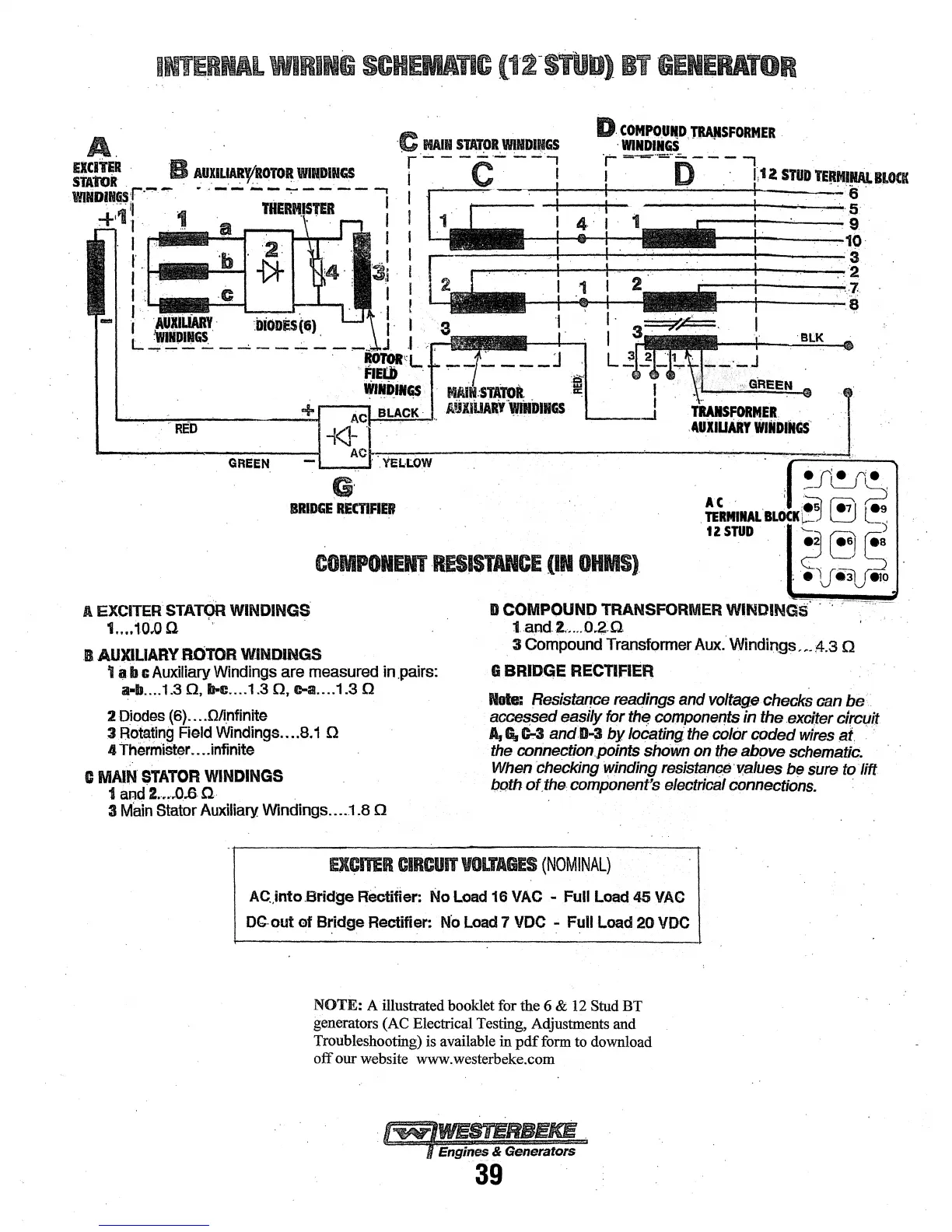 Westerbeke 8.0 BTD - Internal Wiring Schematic (12 Stud); Resistance Values