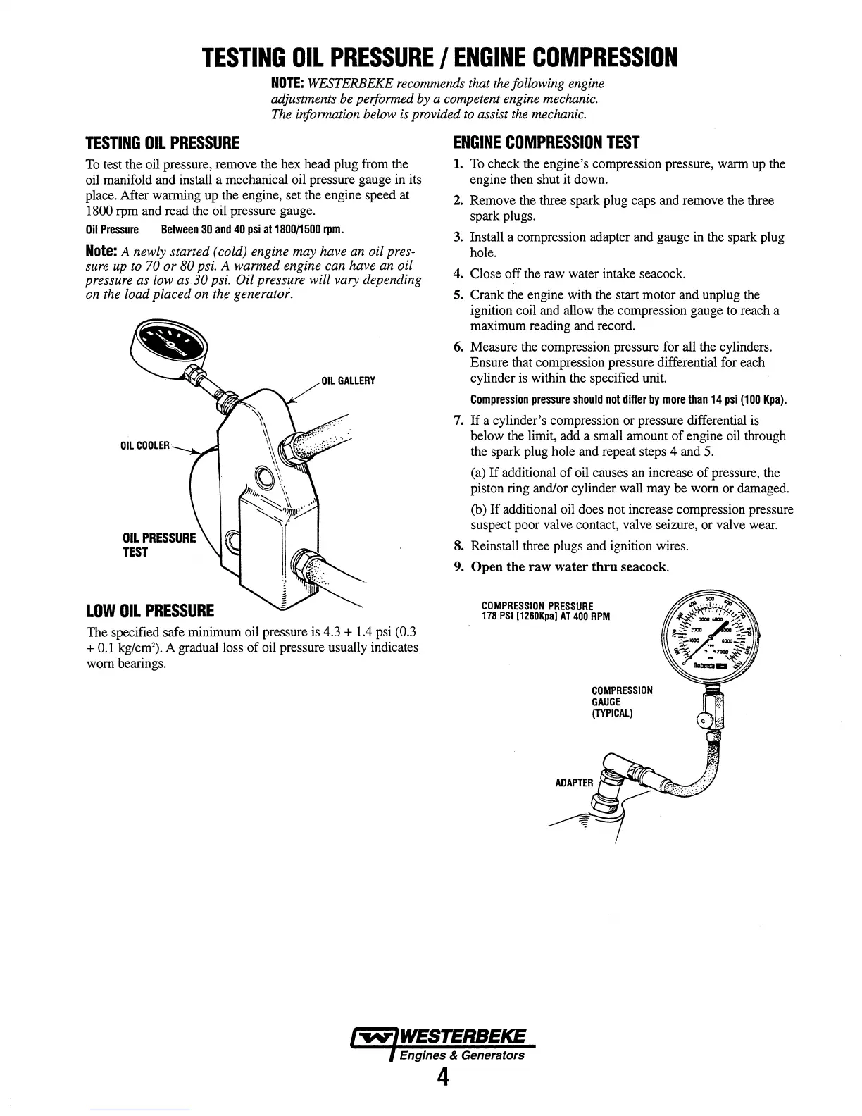 WESTERBEKE recommends that the following engine