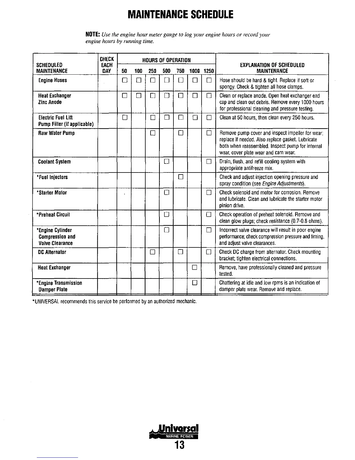 Westerbeke m-35B - MAINTENANCE SCHEDULE; Scheduled Maintenance Tasks (Continued)