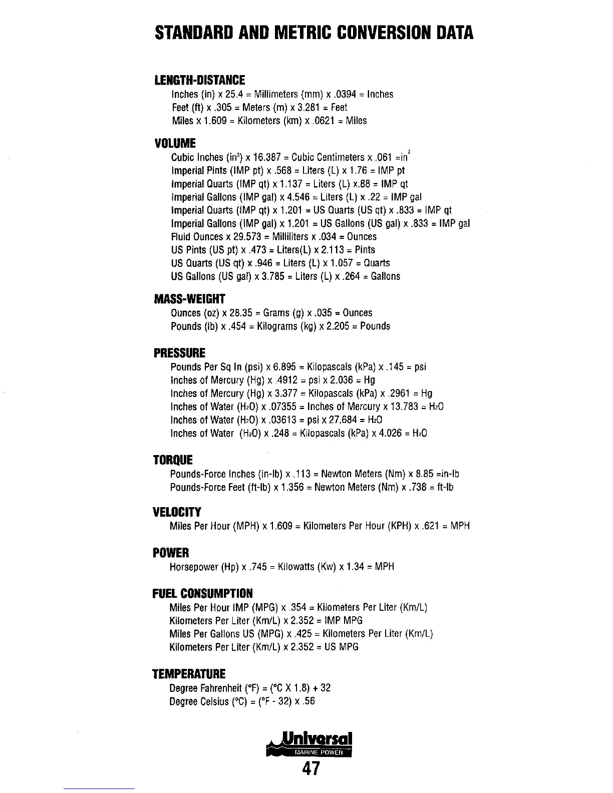 Westerbeke m-35B - STANDARD AND METRIC CONVERSION DATA