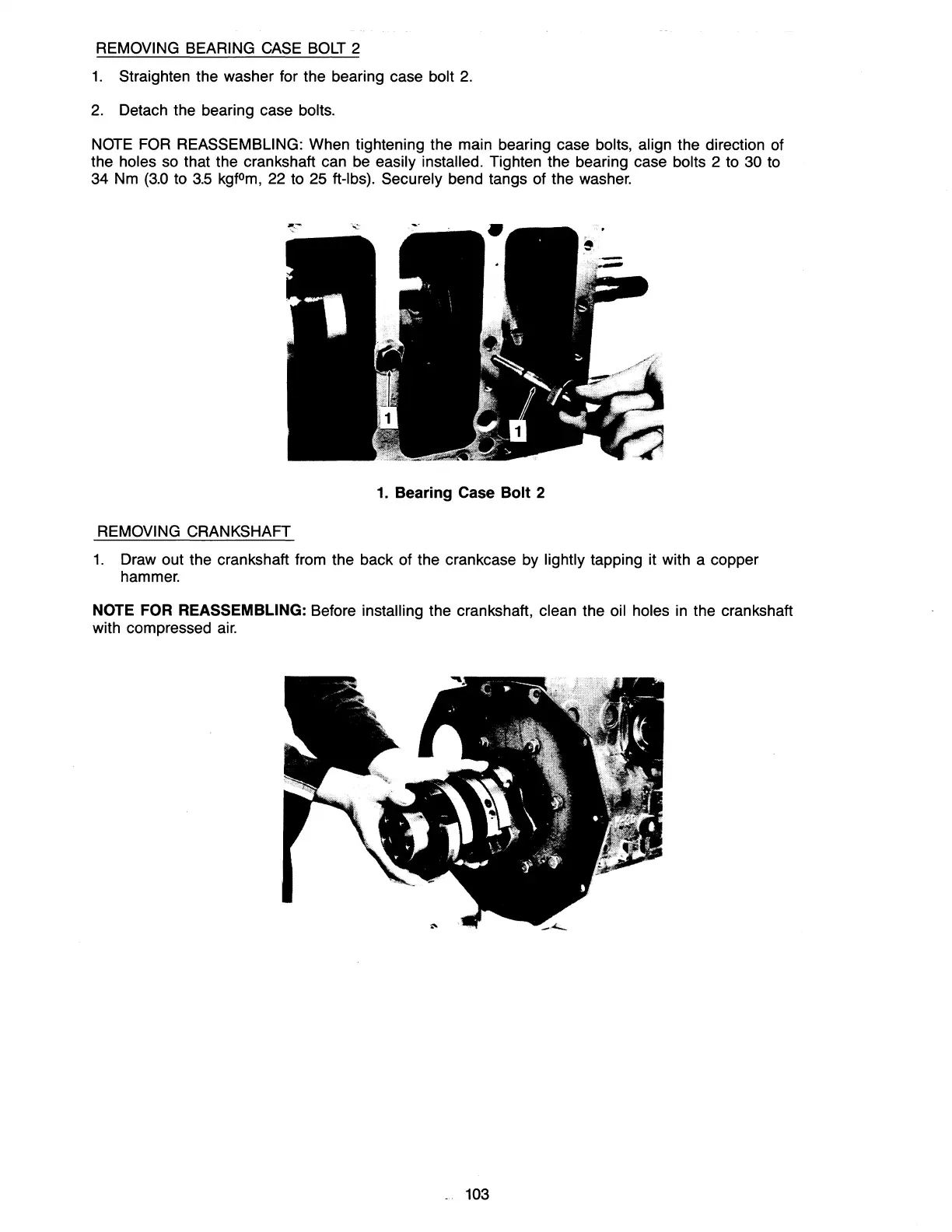 NOTE FOR REASSEMBLING: Before installing the crankshaft, clean the oil holes in the crankshaft