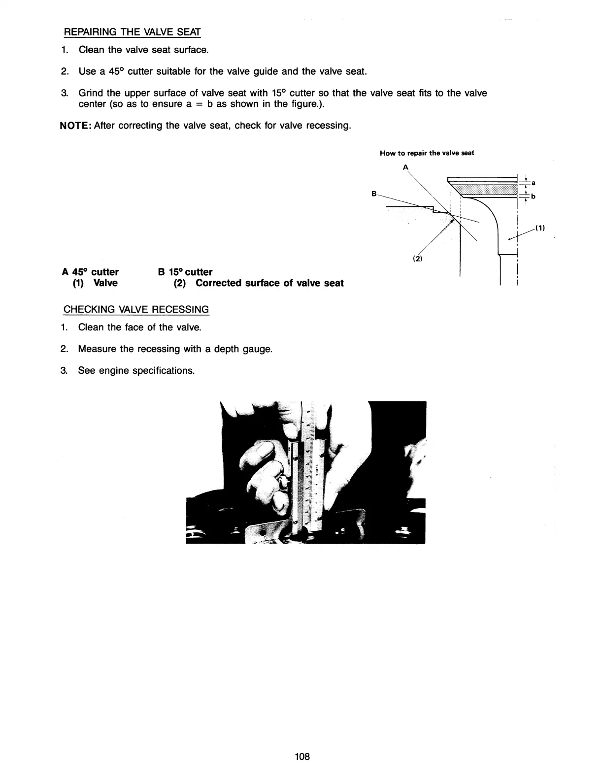 Use a 45° cutter suitable for the valve guide and the valve seat.