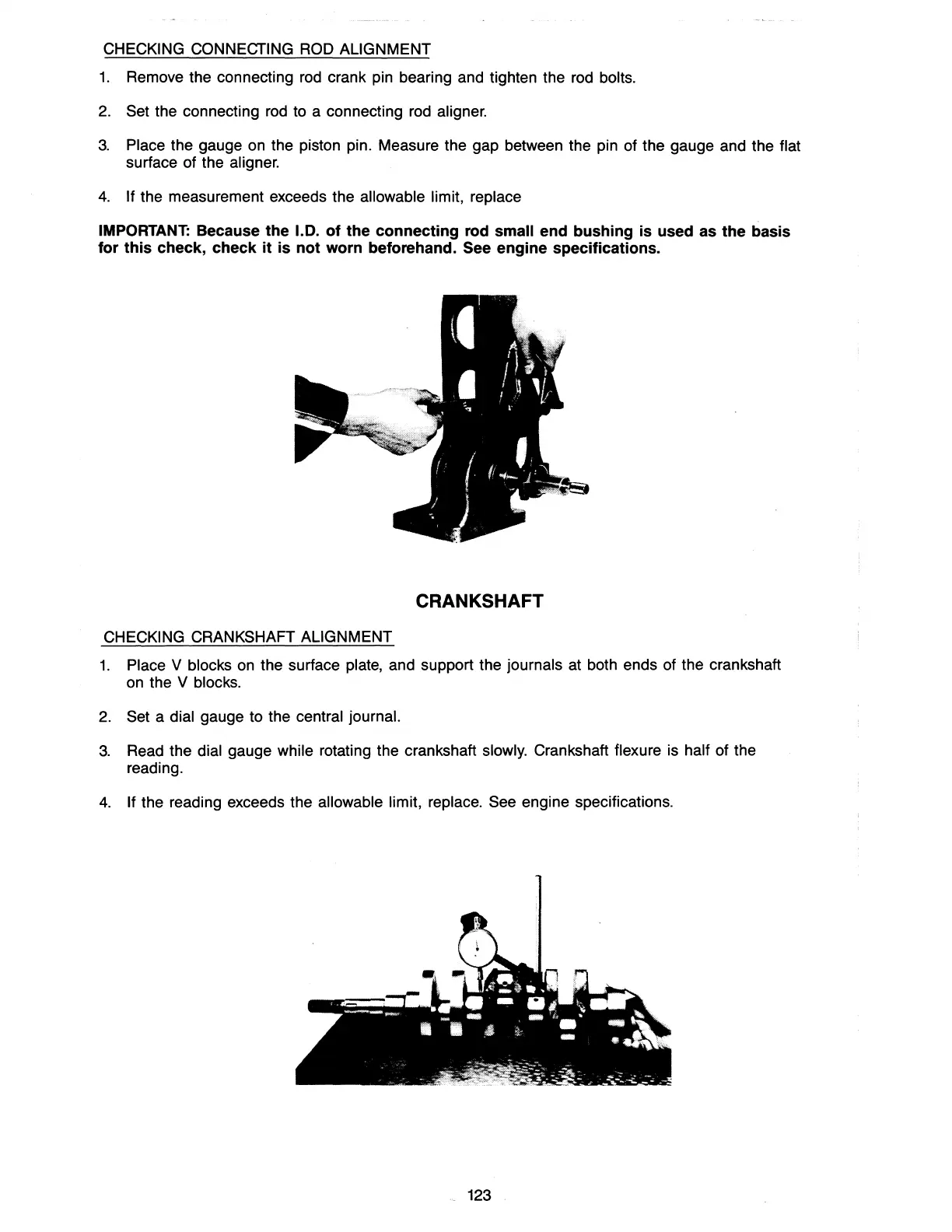 Read the dial gauge while rotating the crankshaft slowly. Crankshaft flexure is half of the