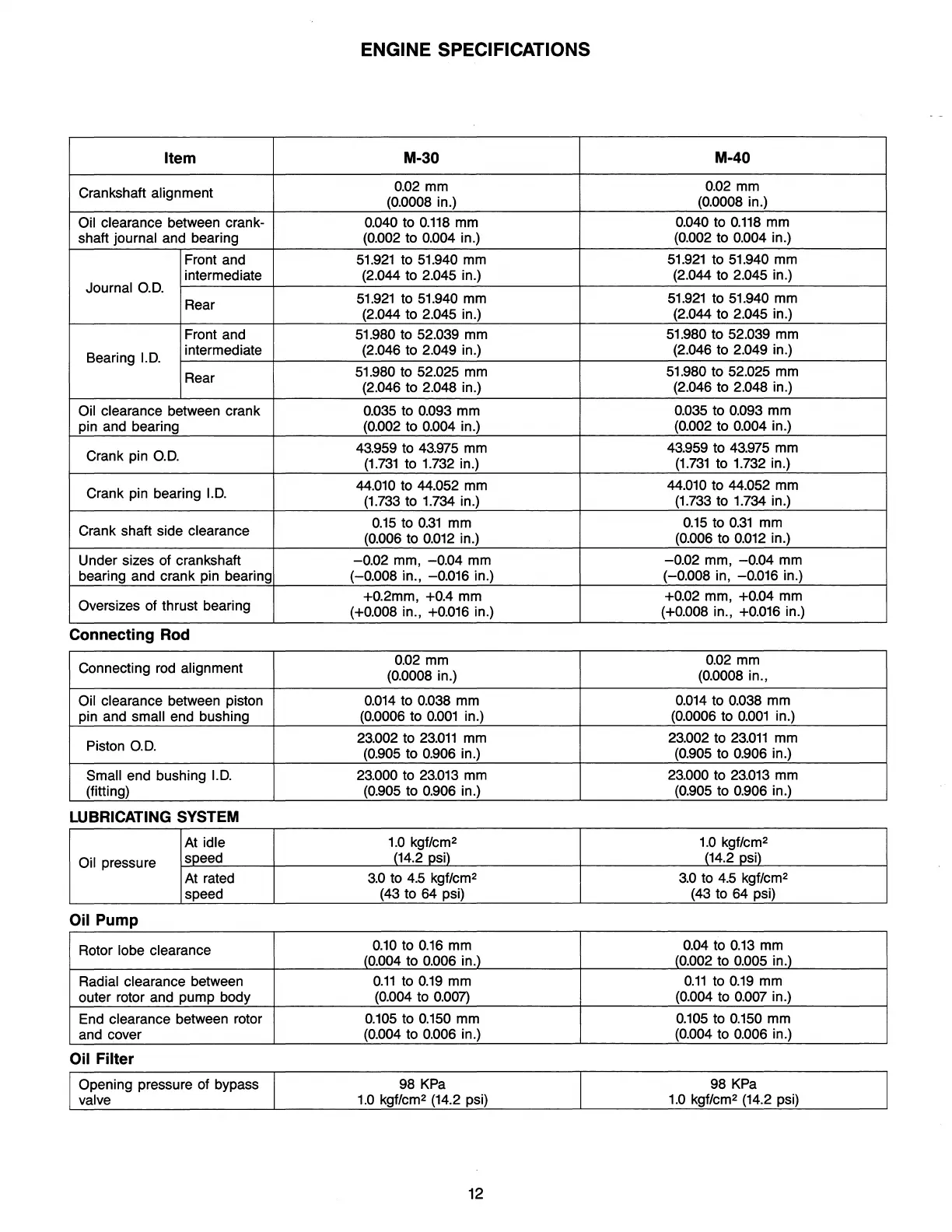ENGINE SPECIFICATIONS