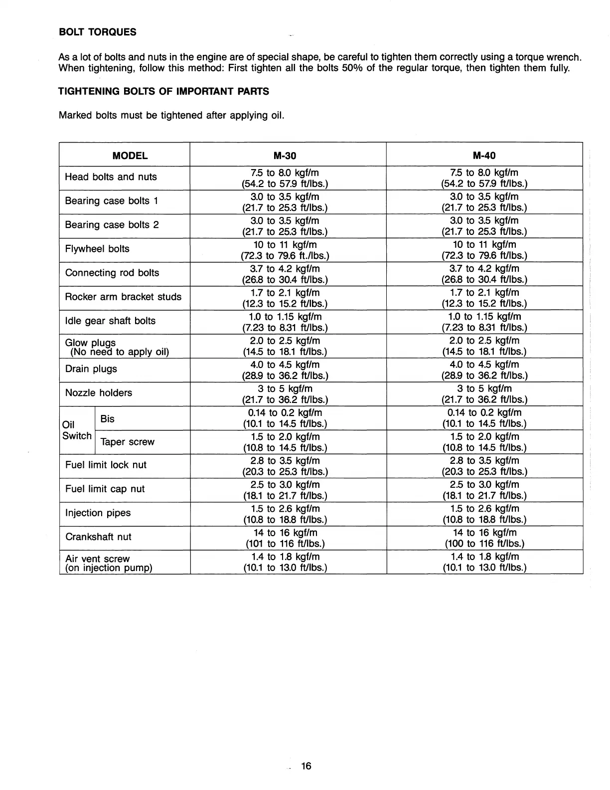 Westerbeke Universal M-50 - Bolt Torques Guide