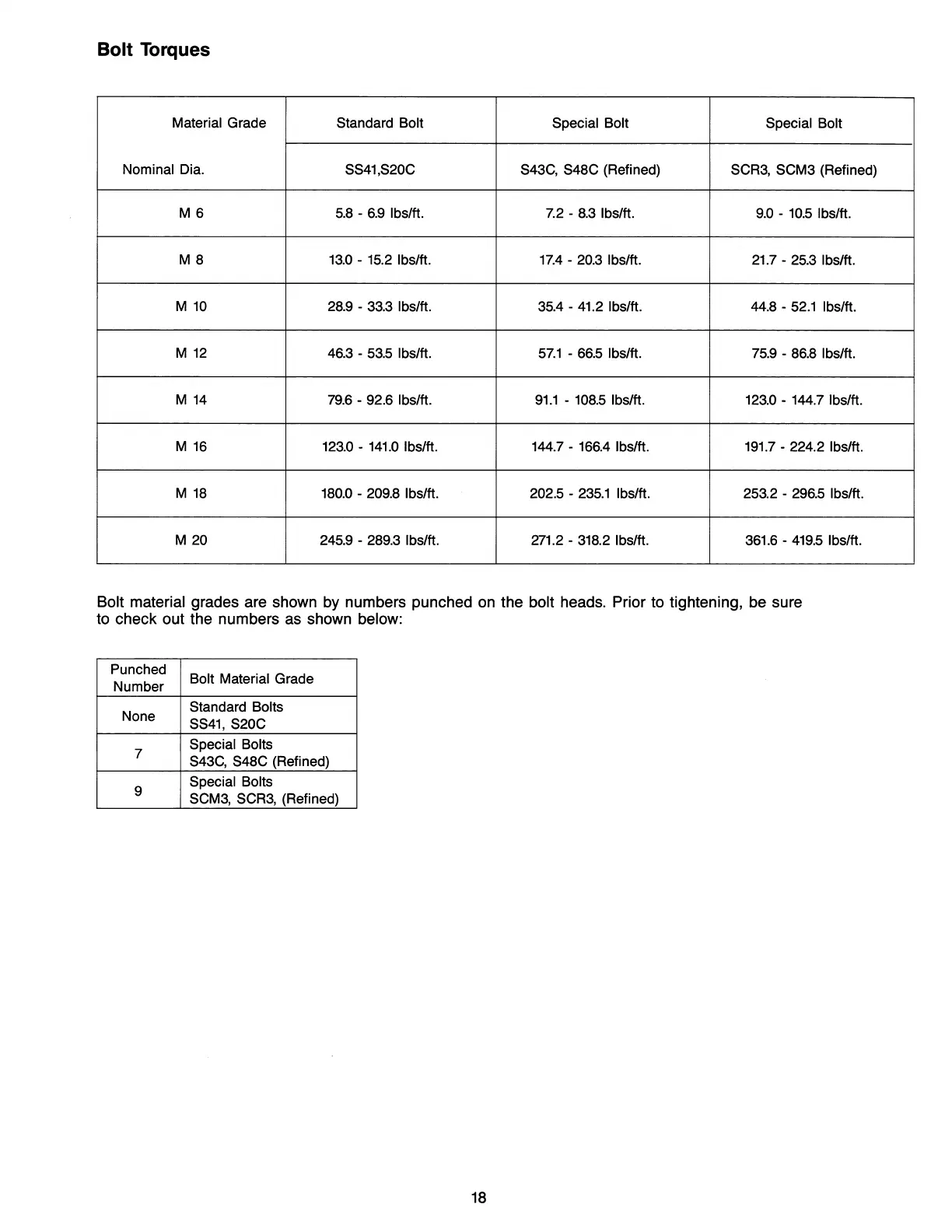Bolt material grades are shown by numbers punched