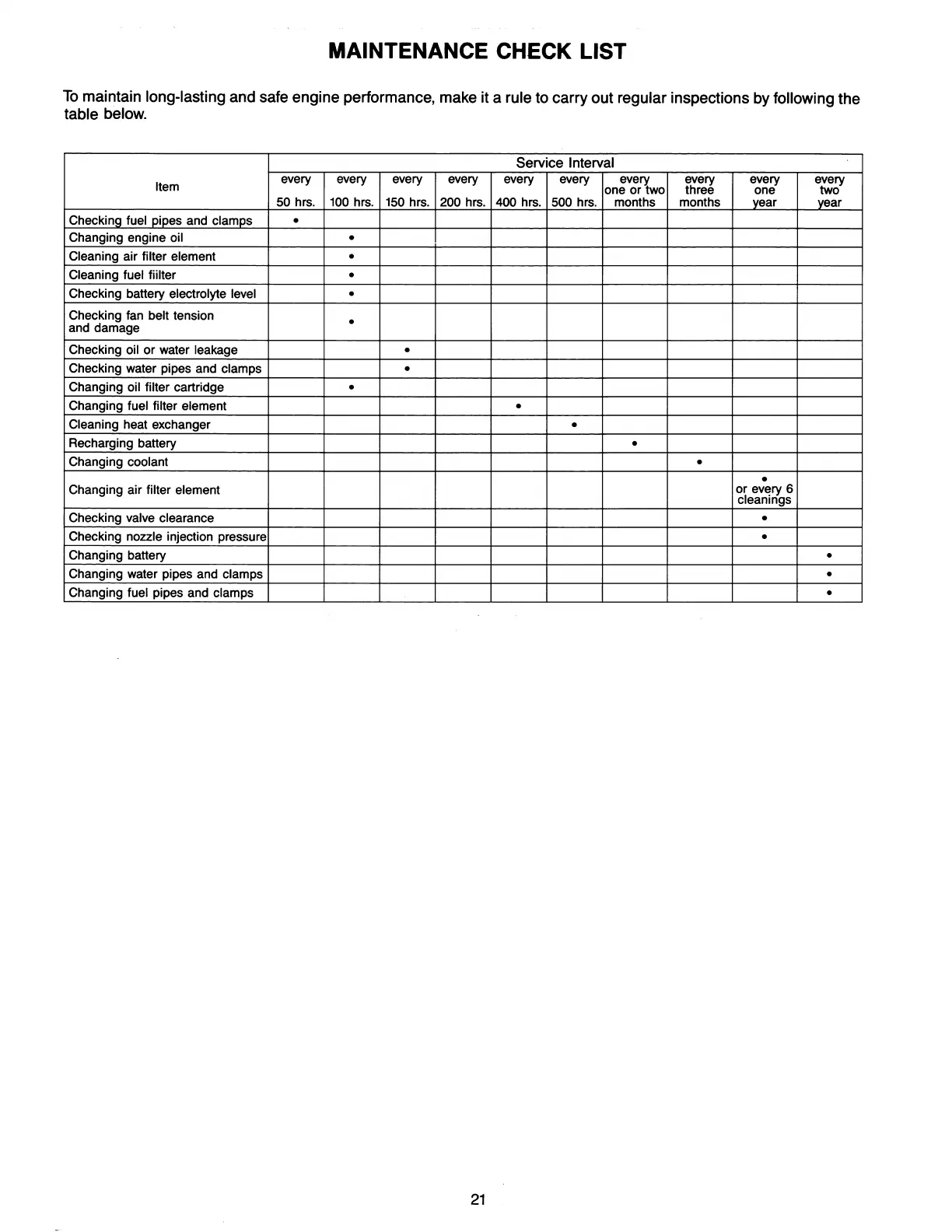 maintain long-lasting and safe engine performance, make it a rule to carry out regular inspections by following the