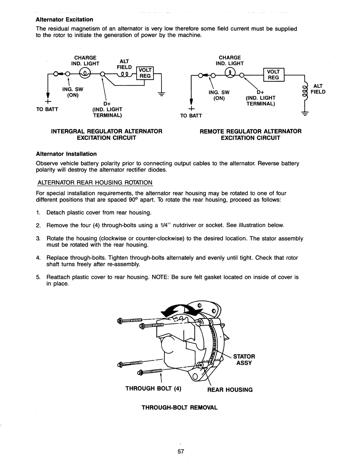 For special installation requirements, the alternator rear housing may be rotated to one of four