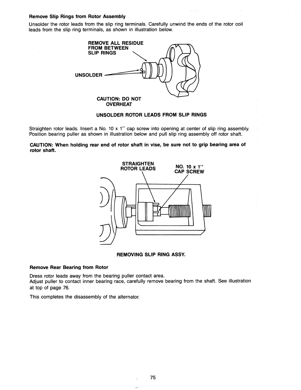 Unsolder the rotor leads from the slip ring terminals. Carefully unwind the ends of the rotor coil