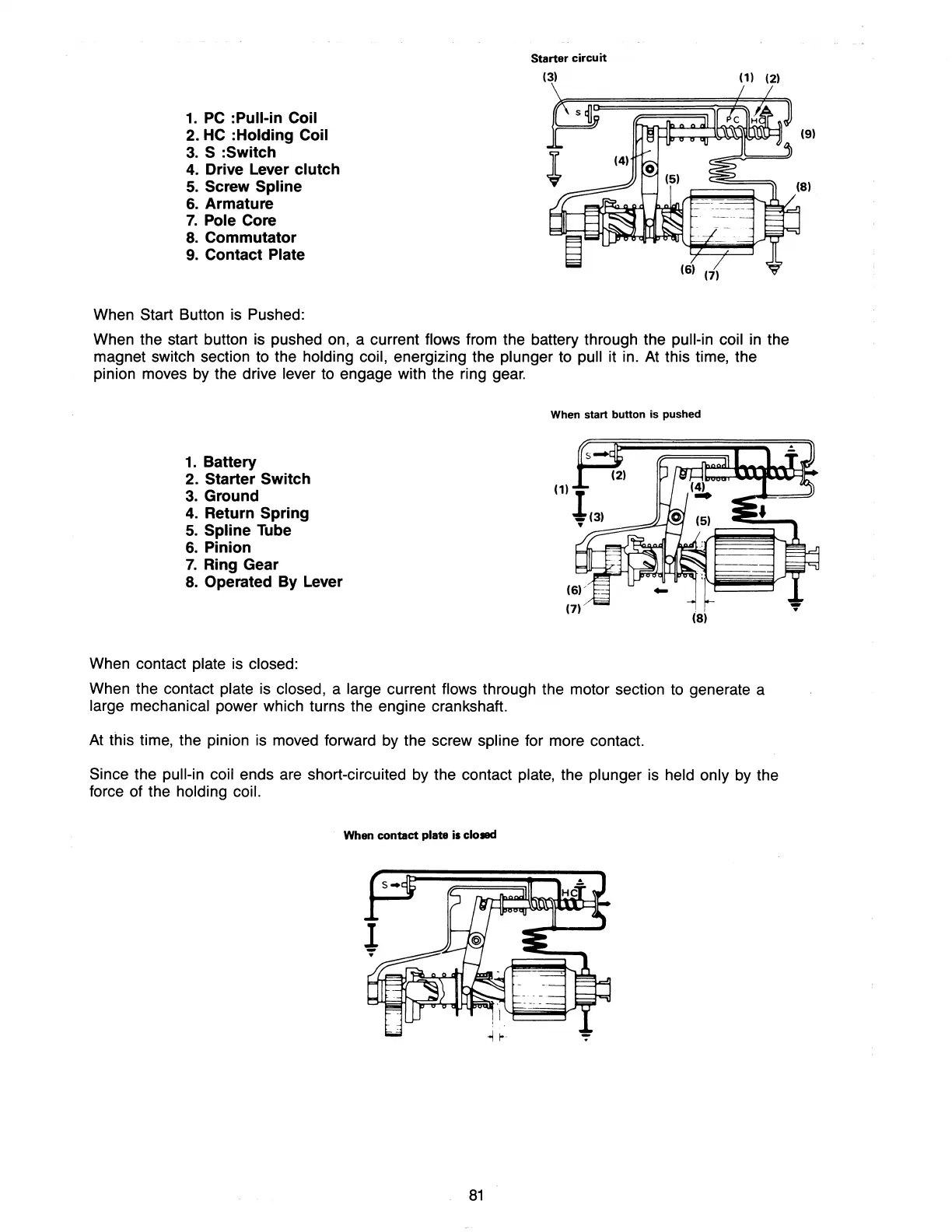 When the start button is pushed on, a current flows from the battery through the pull-in coil