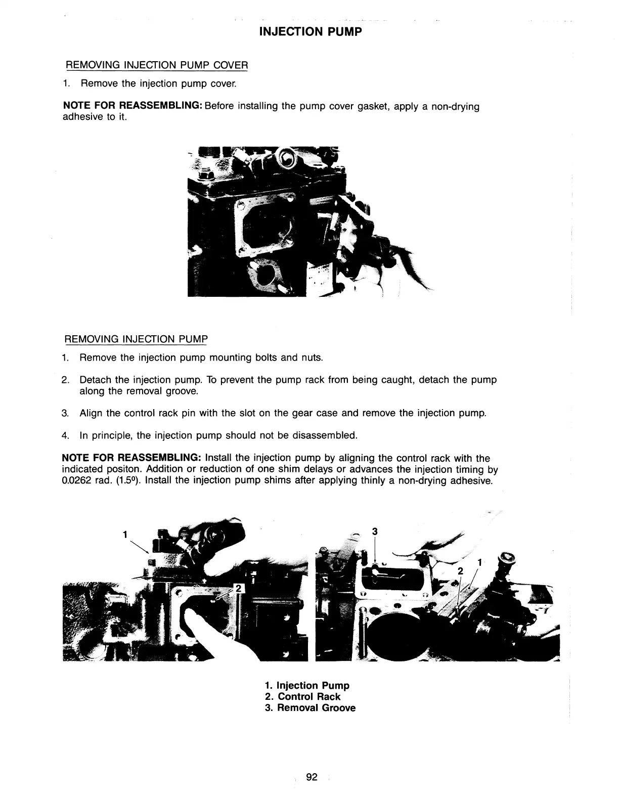 indicated positon. Addition or reduction of one shim delays or advances the injection timing
