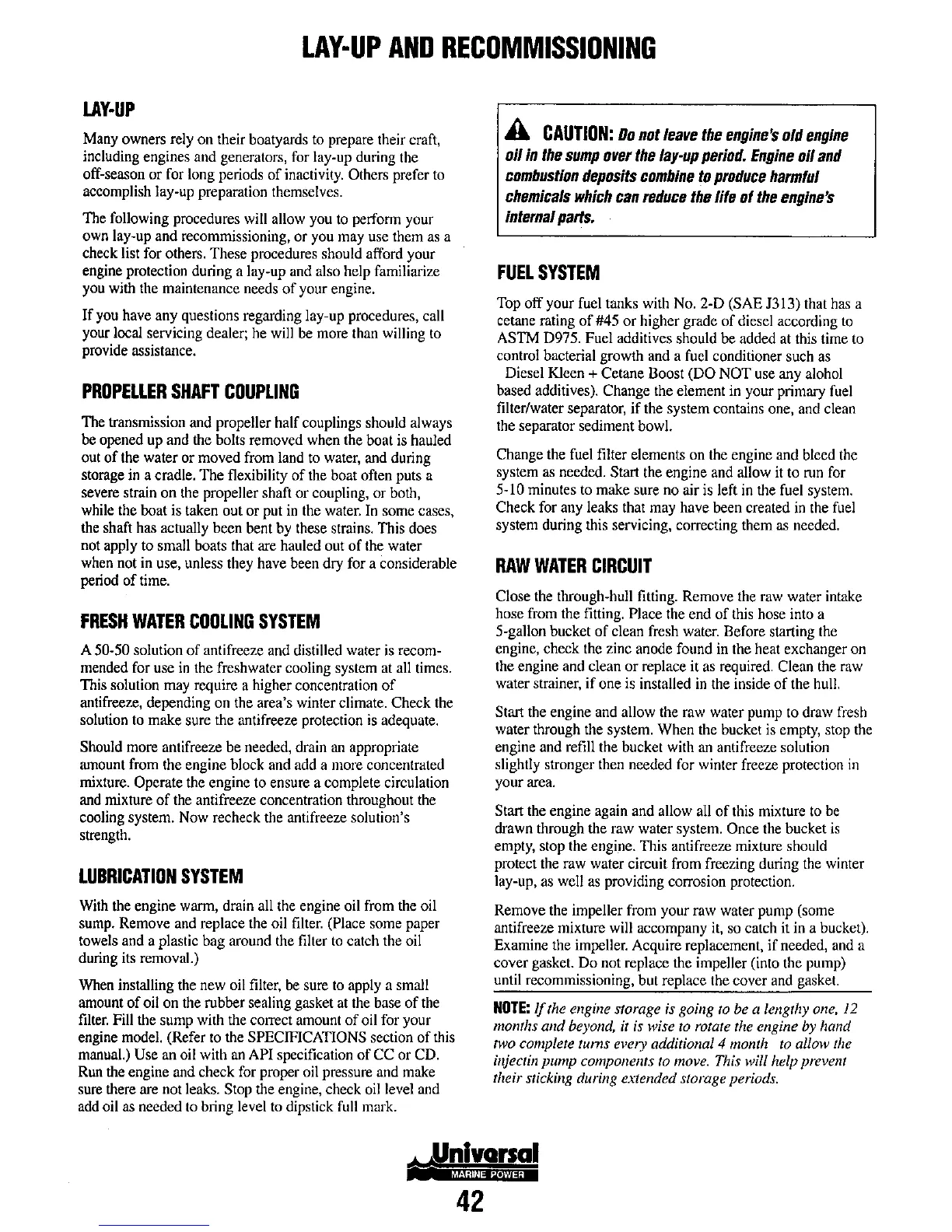 including engines and generators, for lay-up during the