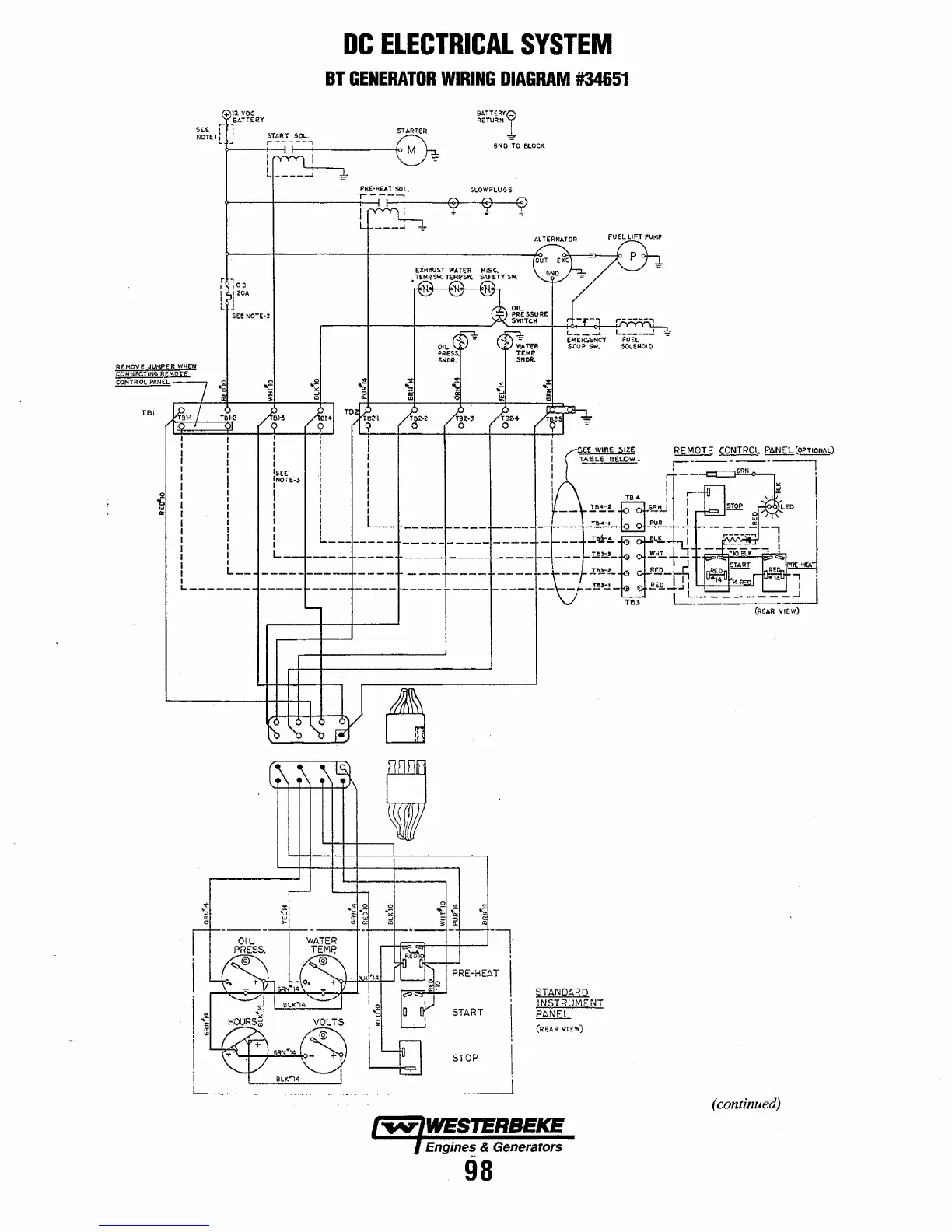 Westerbeke W-27A - DC Electrical System Wiring Diagrams (Continued); BT Generator Wiring Diagram #34651