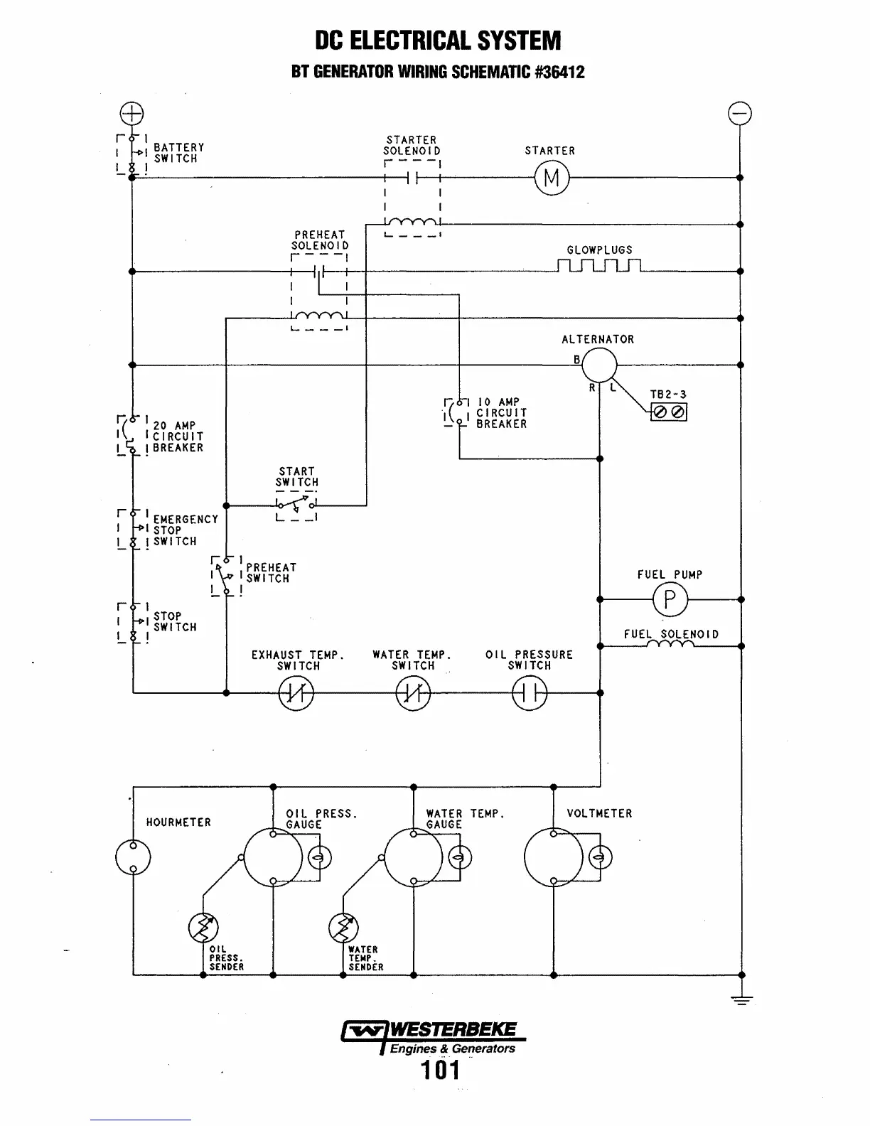 Westerbeke W-27A - DC Electrical System Wiring Diagrams (Continued); BT Generator Wiring Schematic #36412