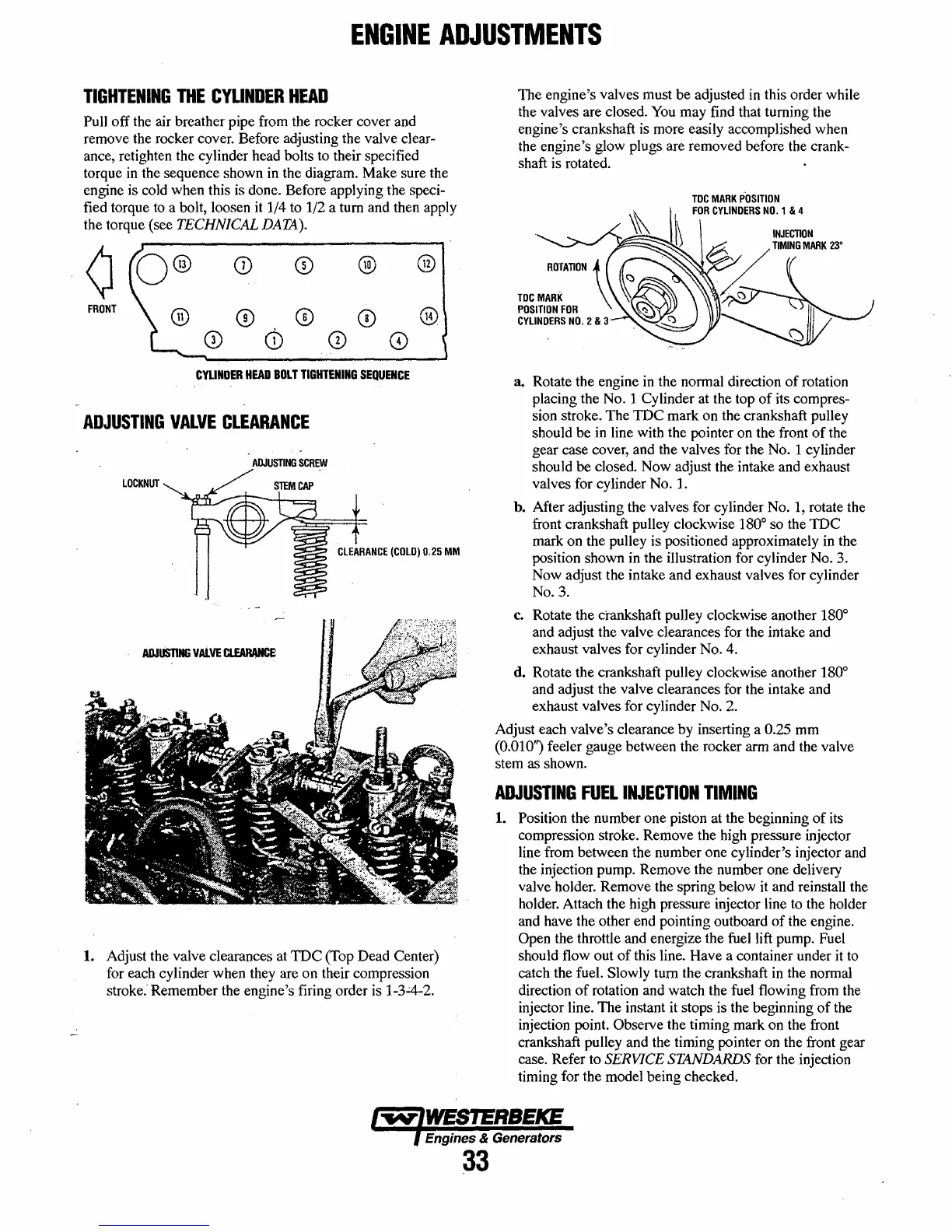 The engine's valves must be adjusted in this order while
