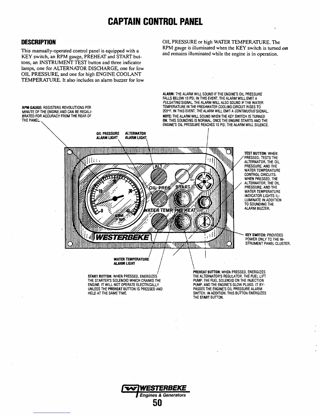 Westerbeke W-27A - Captain Control Panel; Captain Control Panel Description