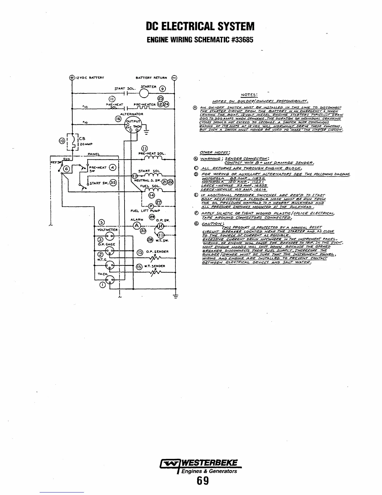 Westerbeke W-27A - DC Electrical System Wiring Diagrams (Continued); Engine Wiring Schematic #33685