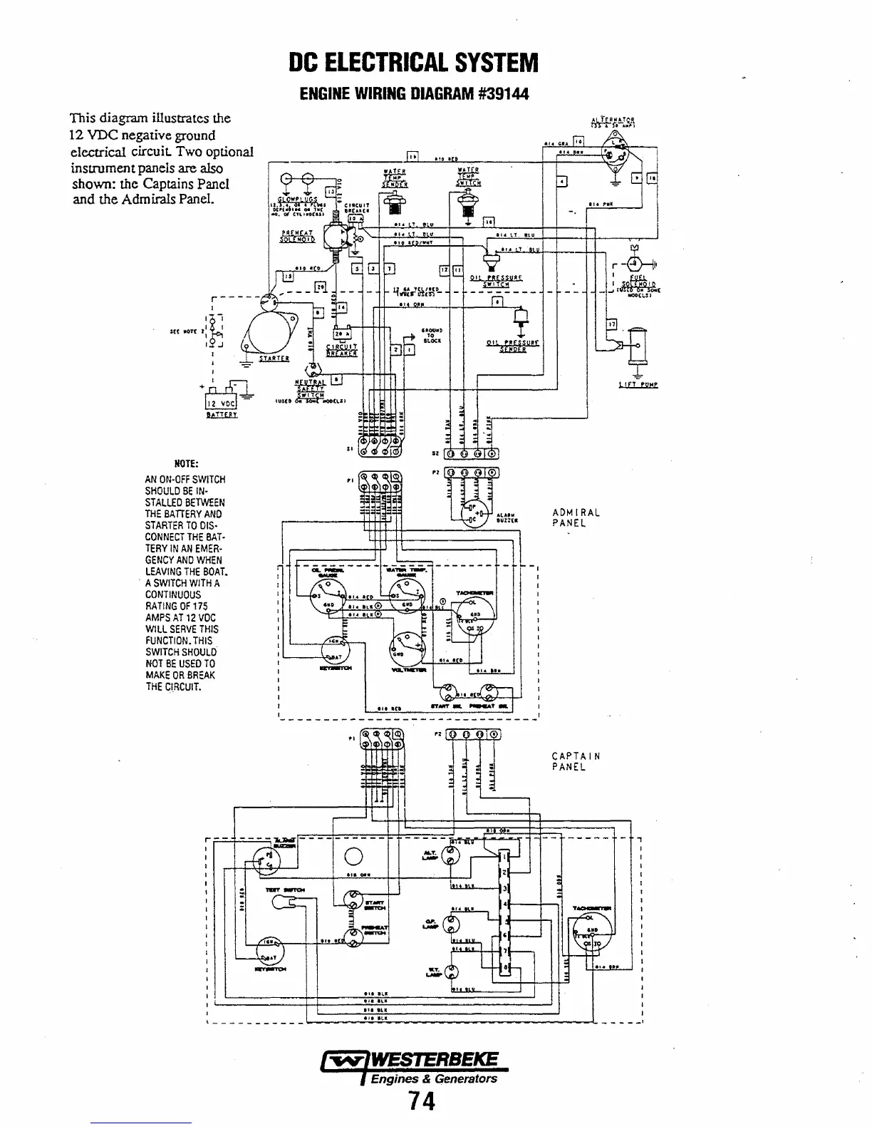 Westerbeke W-27A - DC Electrical System Wiring Diagrams (Continued); Engine Wiring Diagram #39144
