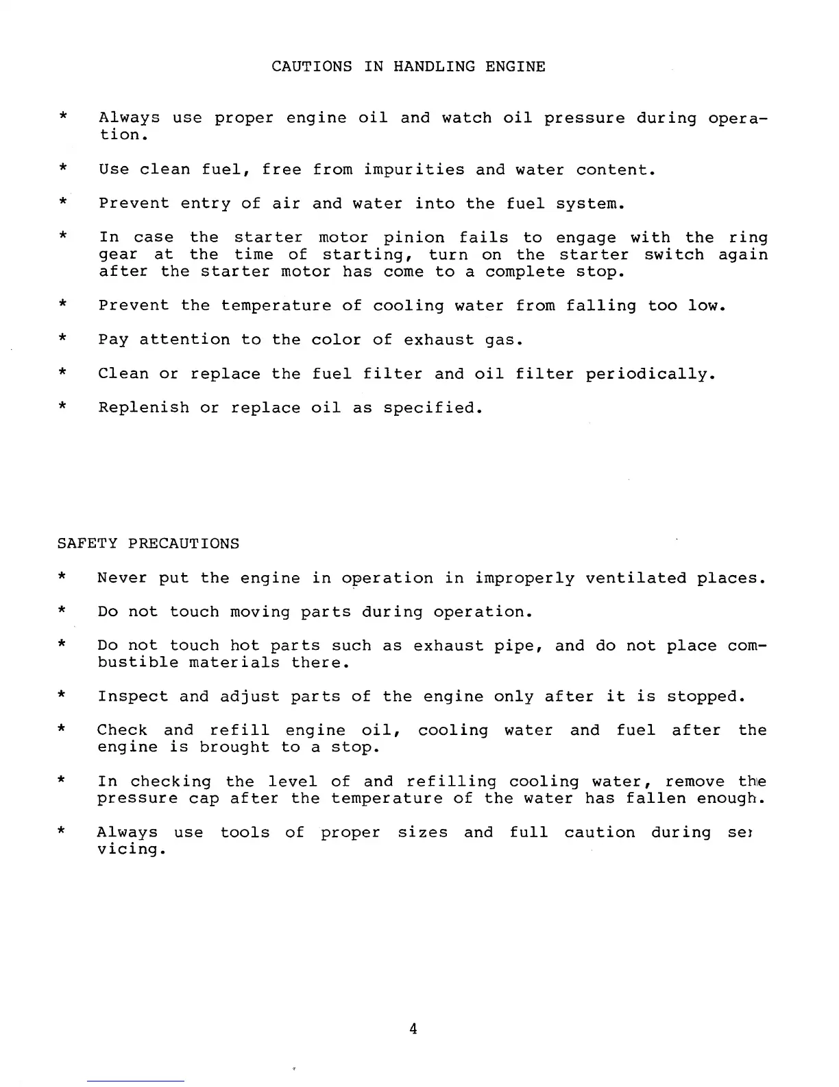 Westerbeke W-33 - CAUTIONS IN HANDLING ENGINE; SAFETY PRECAUTIONS