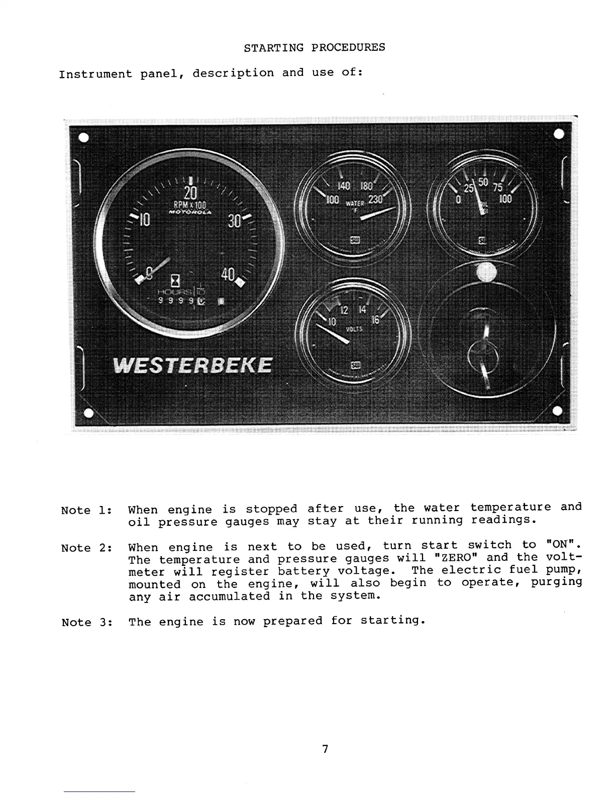 Westerbeke W-33 - STARTING PROCEDURES; INSTRUMENT PANEL OVERVIEW