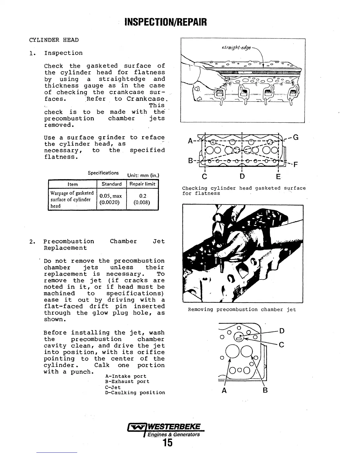 Westerbeke W-46 - Inspection and Repair Procedures; Cylinder Head Inspection