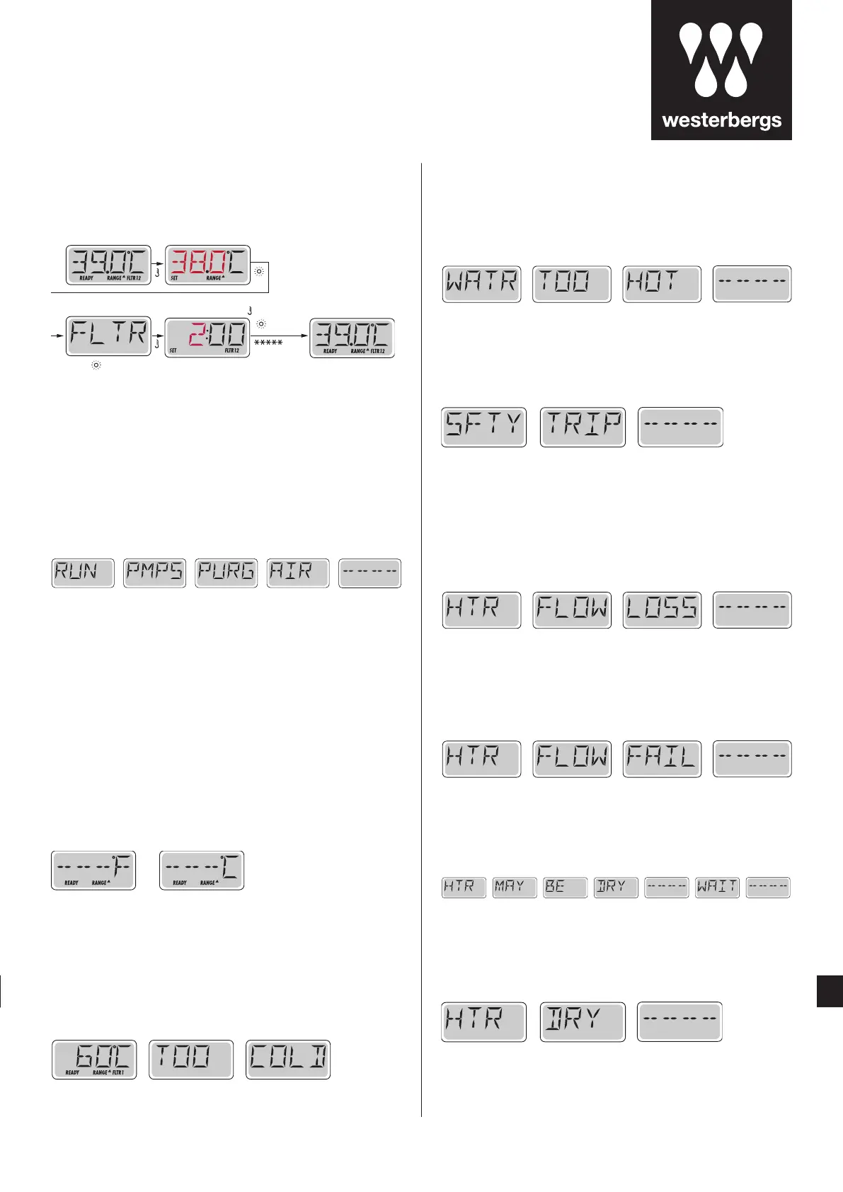 tilbakestilles automatisk når spabadets vanntemperatur understiger