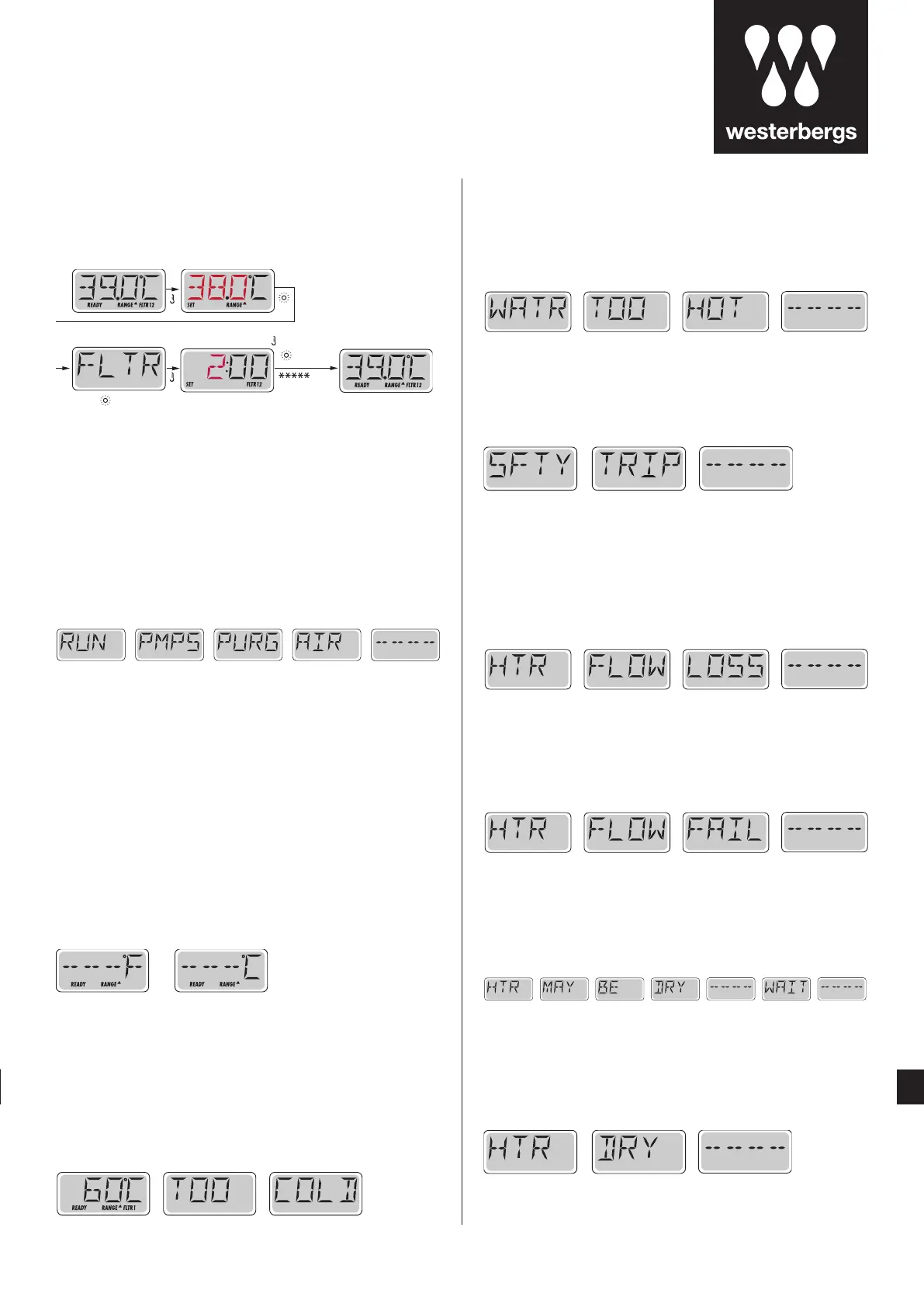et soojendi lähtestada ja käivitada. Vt allpool: „Veevooluga seotud